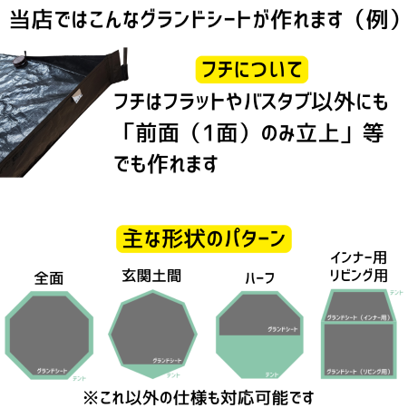 当店のグランドシートはメーカー純正品ではなく、当店で型取・採寸して製造したものです。