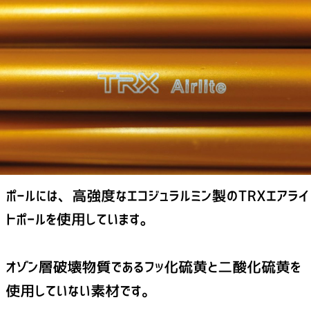 ポールには、高強度なエコジュラルミン製のTRXエアライトポールを使用しています。