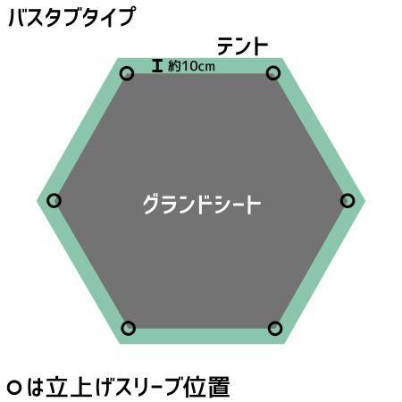 ・テントに対するサイズ感は、フラットで外周から5cm内ライン、バスタブで10cm内ライン(変更も可)。