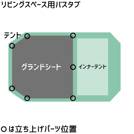・テントに対するサイズ感は、フラットで外周から5cm内ライン、バスタブで10cm内ライン(変更も可)。