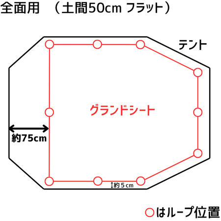 ・テントに対するサイズ感は、フラットで外周から5cm内ライン、バスタブで10cm内ライン(変更も可)。